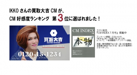 大吉CMが、CM好感度ランキング第3位を獲得しました!